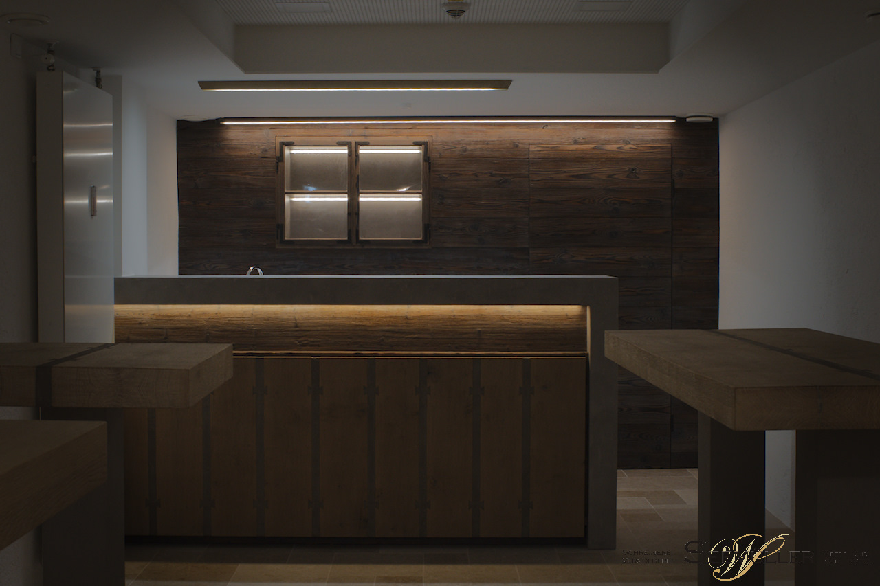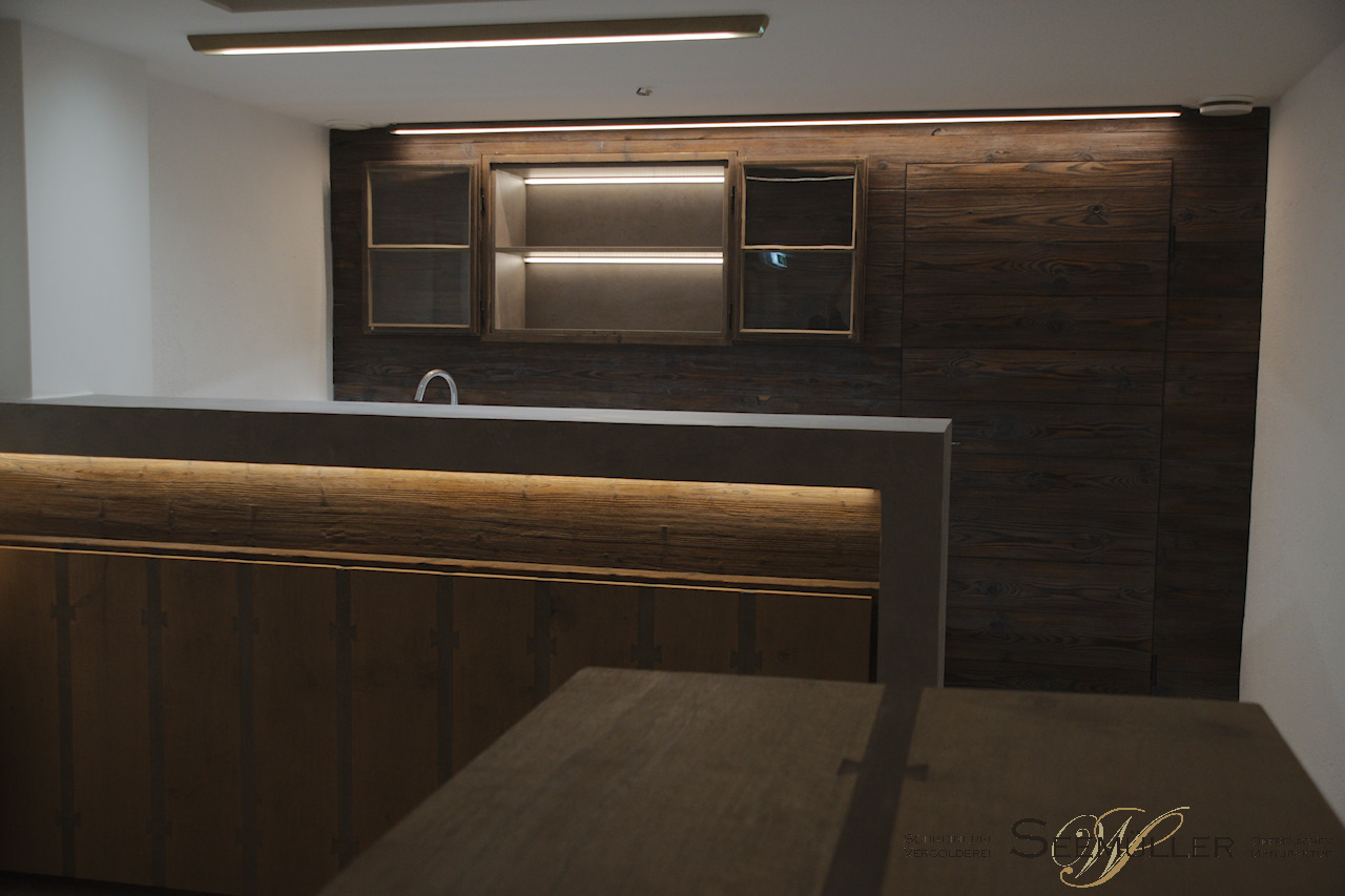 • Der Thekenbereich ist in sonnenverbrannter AurinasAltFichte gehalten.