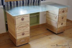 Recycling mal anders, Was man aus alten Weinkisten alles machen kann. Wir stapeln die alten Weinkisten aufeinander und legen die Glasplatte drauf. Eine IDEE. Umgesetzt in einem einzigartigen Möbelstück. Einfacher Korpus dient als Unterbau für die Weinkistenbretter Schubladen Massivholz gezinkt Weiterlesen…