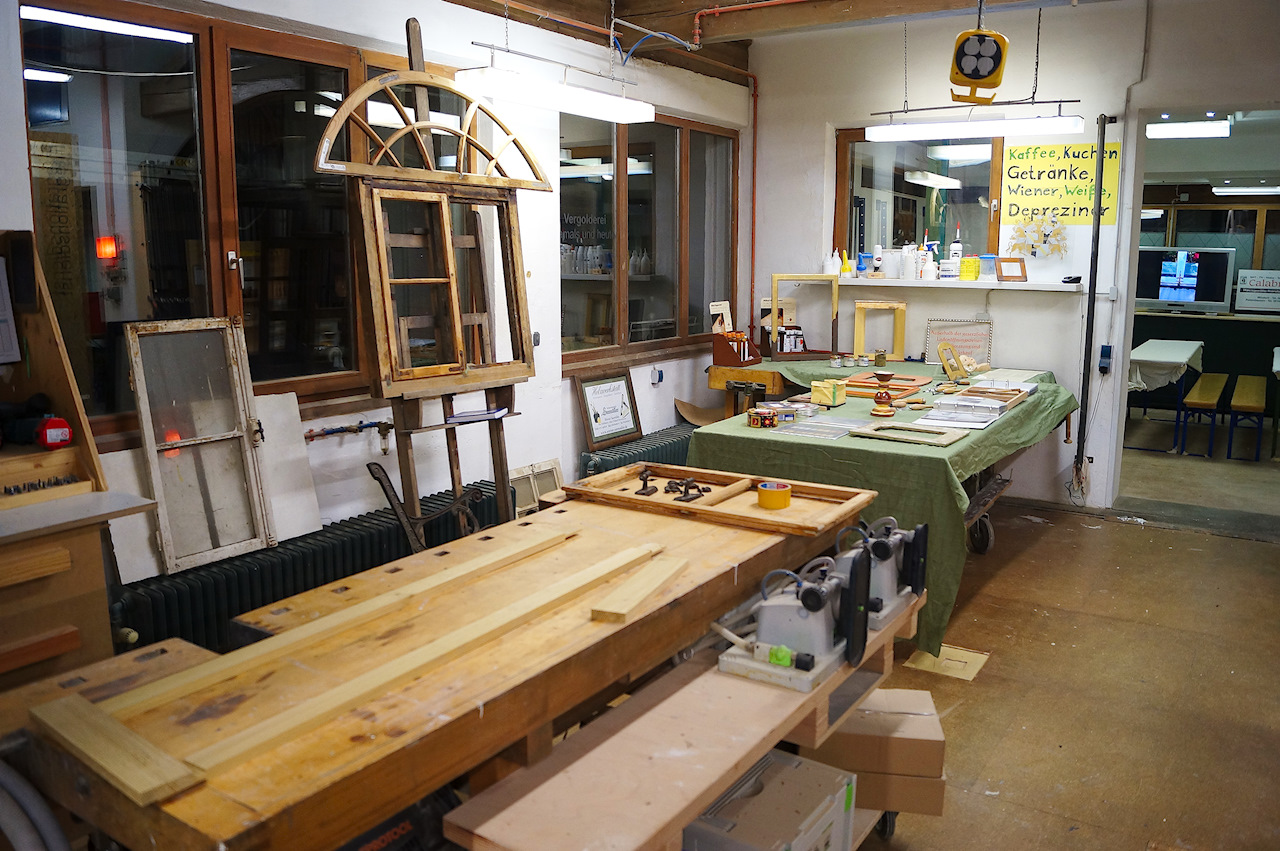 Einer unserer Schwerpunkt in diesem Jahr liegt auf dem Erhalt historischer Werte und Arbeitsweisen im und außerhalb des Denkmalschutzes. So können verschiedene Restaurierungstechniken, wie das Fassen einer Tafel oder Radiertechniken auf Echtgoldgrund gesehen werden. Auch gibt es an realen Kastenfensternachbauten einiges zu erfahren bezüglich Wärmedämmwerten, energetischen Verbesserungsmaßnahmen bei Bestandsfenstern und Erhaltungsmöglichkeiten im Sinne des Denkmalschutzes.